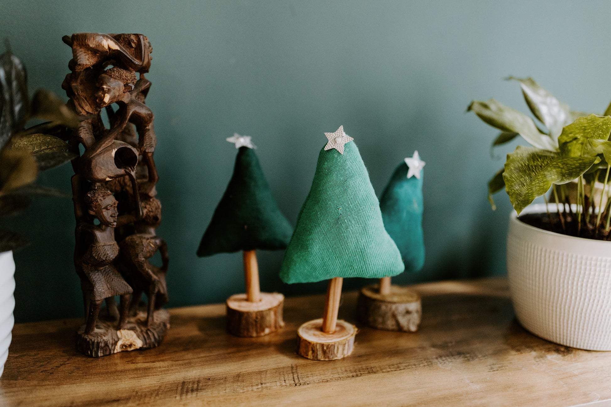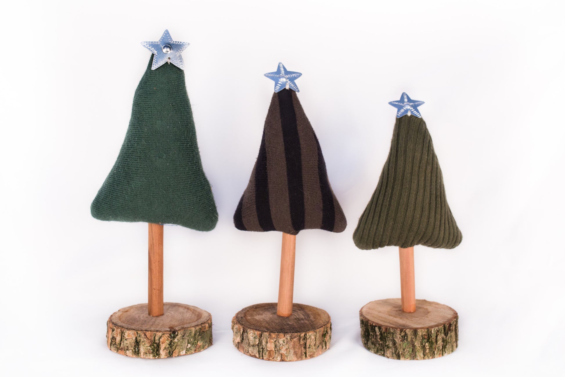 The trees are sewn by our artisan team from upcycled sweaters found in the Kenyan market. The stars on each piece are hand cut, stamped, and pounded with designs by William. And the tree trunk is handmade wood that has been cut and sanded by local woodworkers in Kibera Slum. Each piece provides empowerment and opportunities for these artisans. Add a festive and warm touch to your home that will last for many Christmases to come.