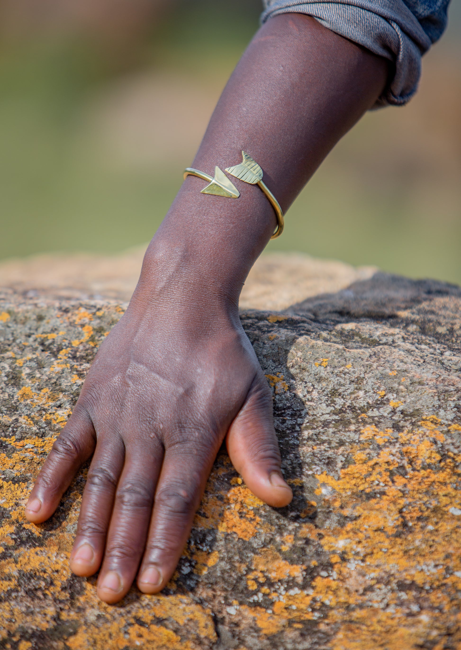 Made from discarded brass pieces of locks and tops gathered by our artisans, the Arrow Brass Bracelet is a work of art. Individually cast, the arrow tail features an intricately cut design pattern. Perfect on its own or can be layered with other bracelets. Pairs well with our Gold Beaded Bracelet, Mustard Seed Bracelet, and Coordinates Bracelet.