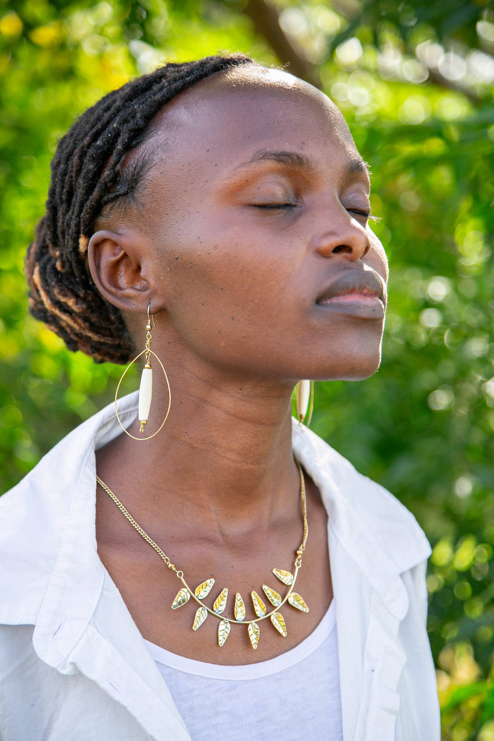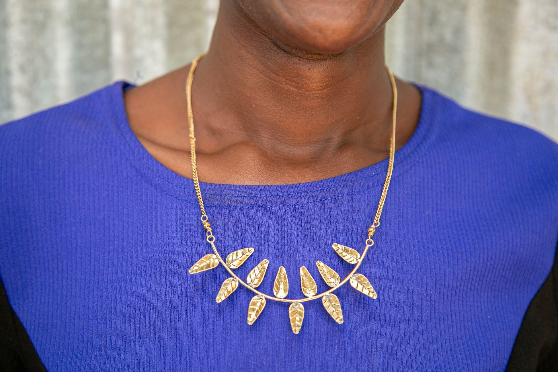Our Branch Necklace serves as a reminder of our connection, both to God and to others. Created using hand-stamped brass leaves soldered to a curved vine branch, it symbolizes the growth achieved from the effort of our connections.