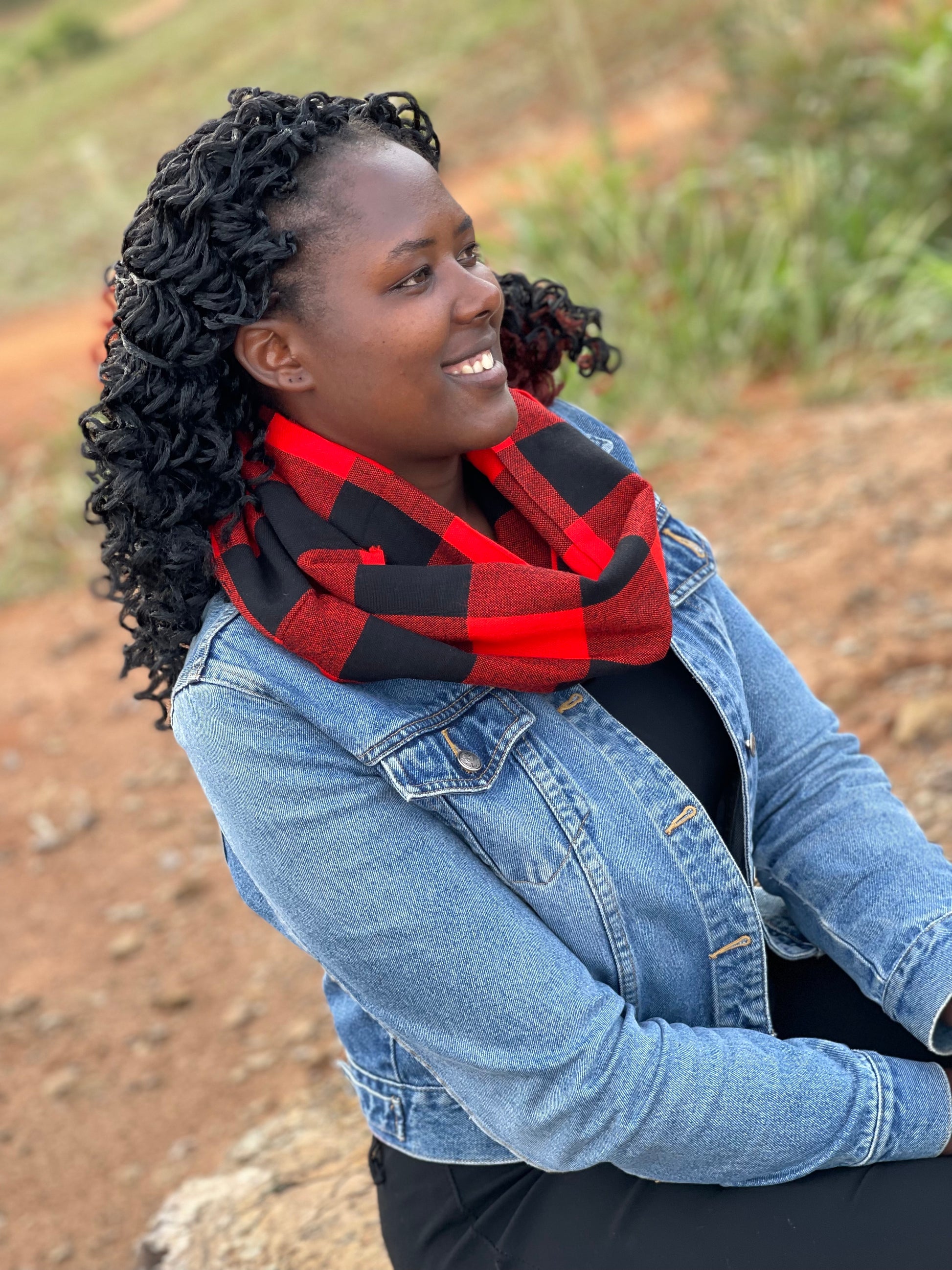 This infinity scarf is created with traditional Masai fabric from Kenya. The Masai are known for their nomadic, simple lifestyle living near Kenya's famous wildlife--lions, wildebeest, giraffes, and more. Remember the strength of the Masai and stay warm and stylish with this piece created for you by Jenipher and Belinda from Kenya. Your purchase provides empowerment.
