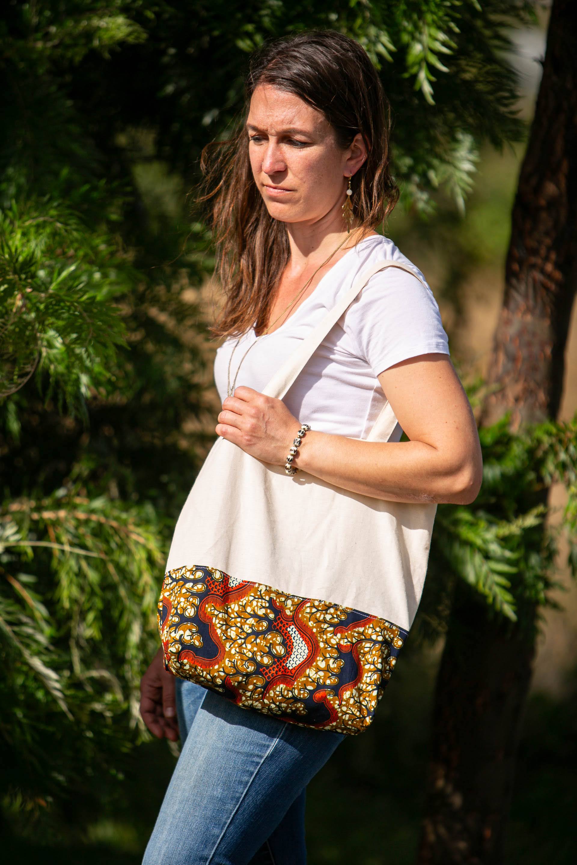 Our Canvas Tote Bag is designed to handle it all - books from the library, essentials on an outing, snacks for a picnic and countless errands and activities in between. Made with a colorful African patterned fabric bottom and a sturdy canvas top and strap, each bag is pieced and sewn together by our artisan team in Nanyuki, Kenya.