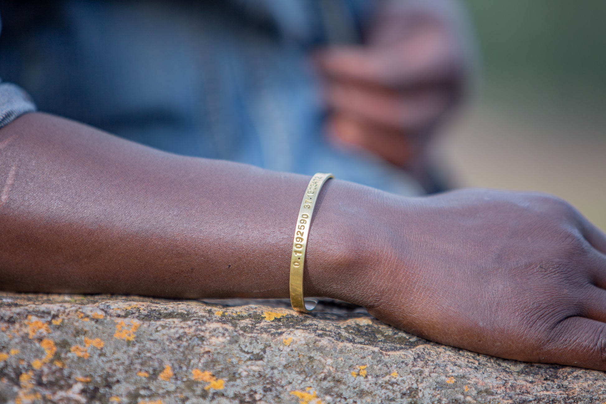 Following the geographic coordinates hand-stamped on this repurposed brass bracelet would lead you to Grain of Rice Academy in Nanyuki, Kenya. At our primary boarding school, 160 students from preschool through grade 8 experience a hands-on, creative approach to learning, filled with literature, the arts, and STEM activities.