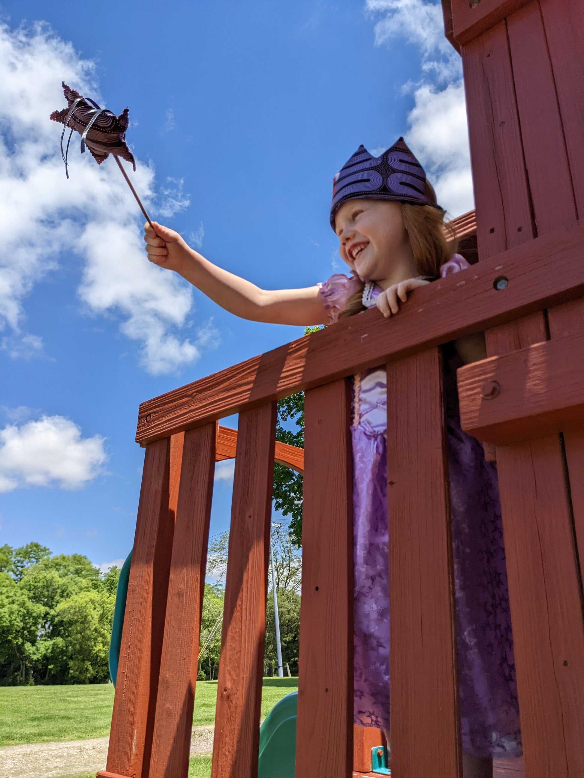 Bring a bit of magic to your little one's playtime this summer with this beautiful handcrafted fabric crown and wand set that were made by our team of artisans in Kenya. An adjustable crown using fabric easily ties to accommodate a size for your child so they can spend hours using their imaginations during play time! Perfect activity for summer break. Also makes unique and fun gift for a child in your life.