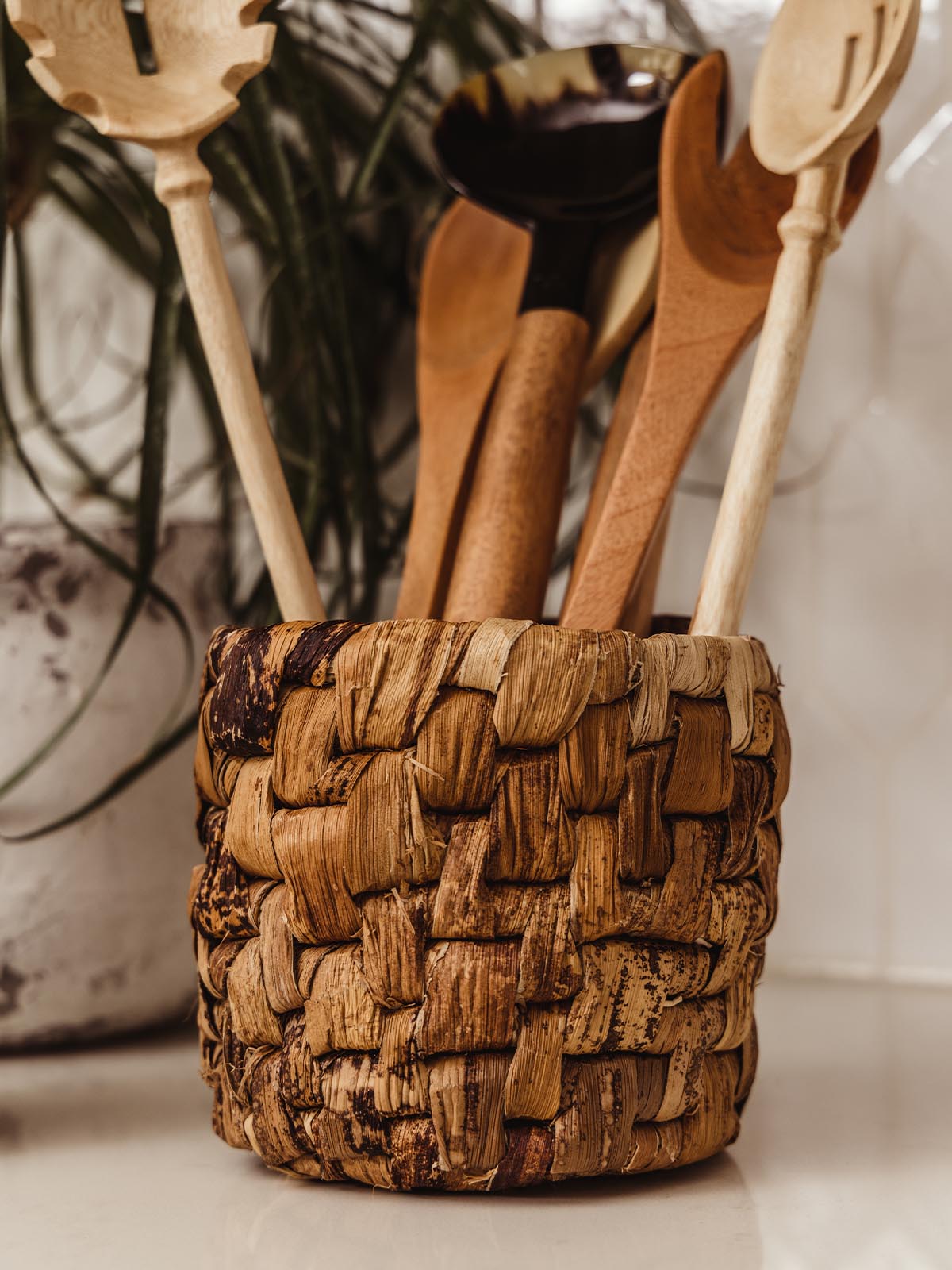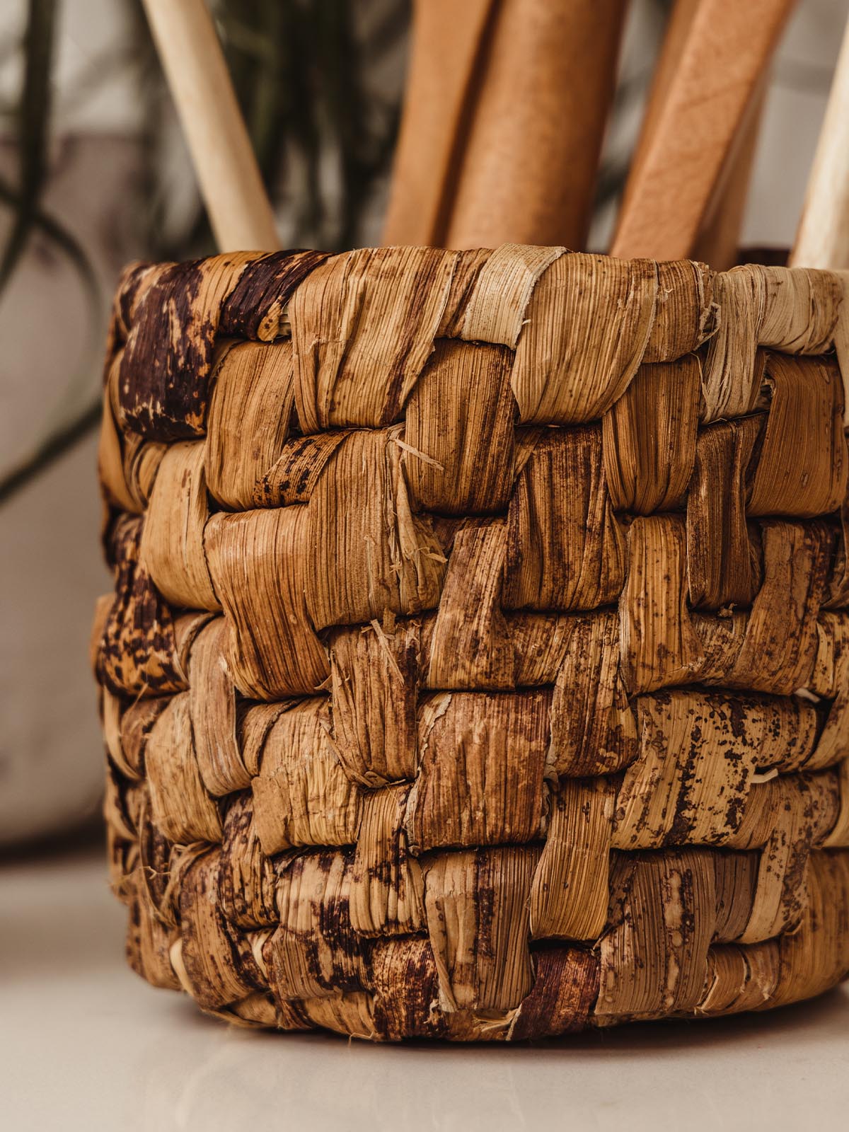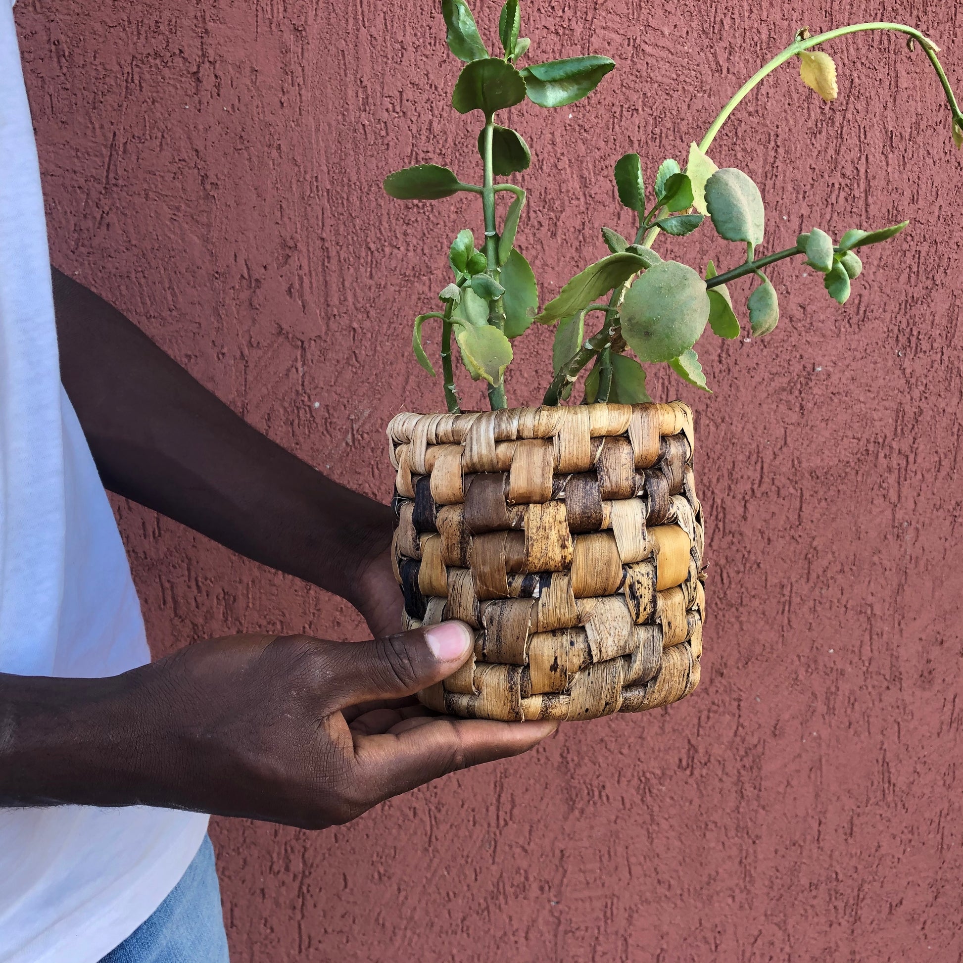 Perfect for using in your kitchen or as a eco-friendly pot for your new plant baby! Each container is created with the fibers from the banana tree, which peel off from the tree as it grows. Eco-friendly and natural. Each measures approximately 5 inches tall.