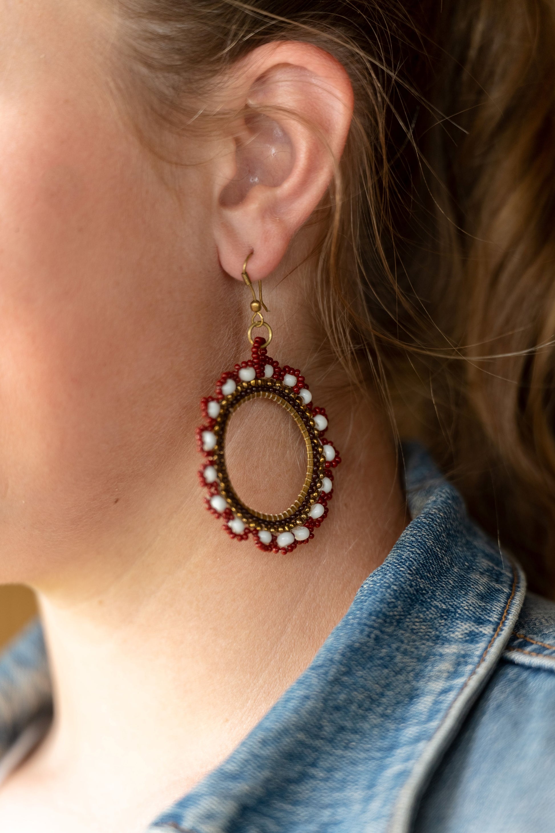 Our Circle of Hope Beaded Flower Earrings feature a central hoop symbolizing the endless nature of hope. Surrounding the hoop, delicate individual flowers represent the unique beauty that hope brings into life. Wear these earrings to carry a meaningful reminder of optimism and grace with you every day.
