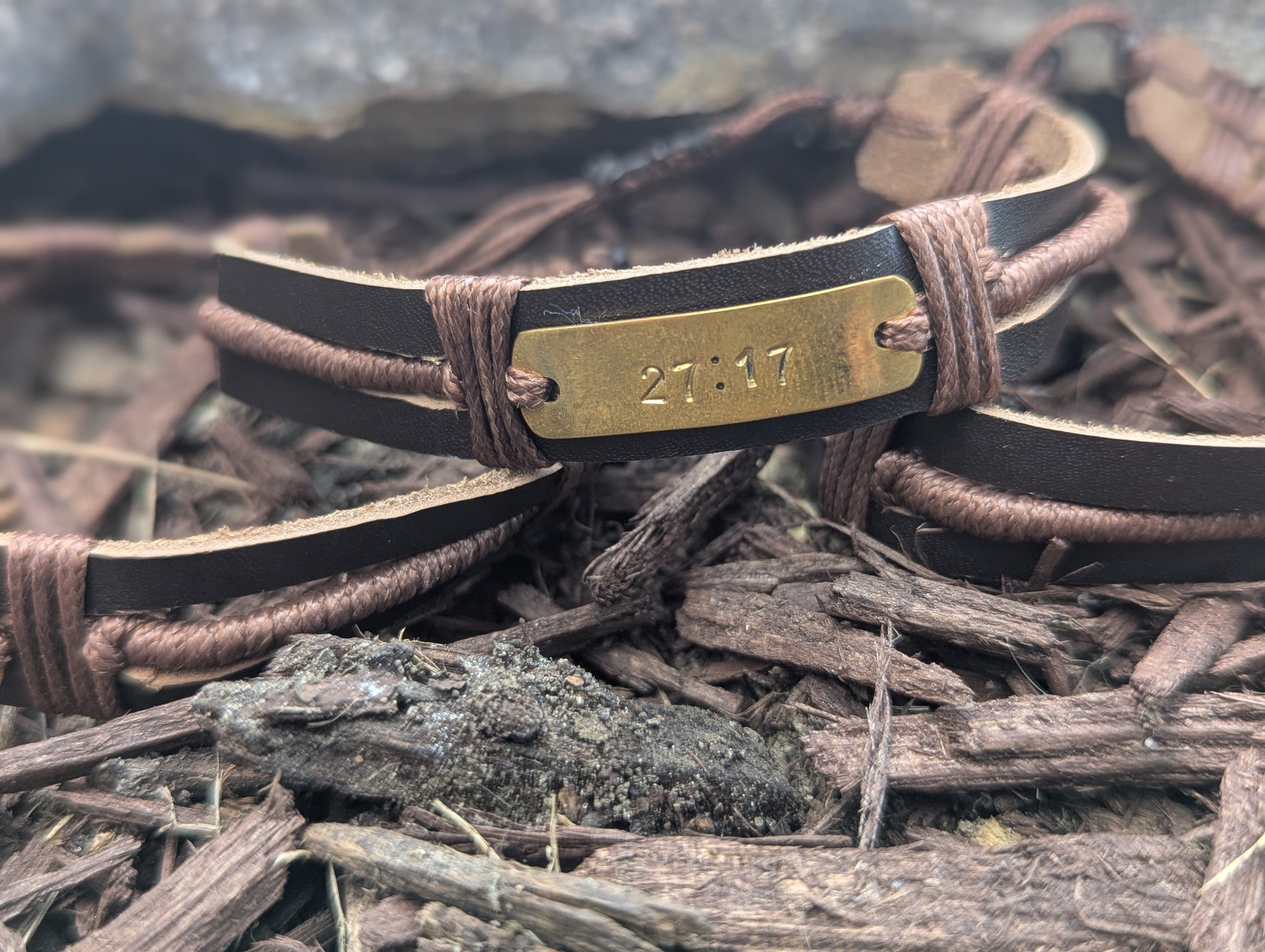 The Faith Forged Leather Wrap Bracelet combines adjustable leather cording with a hand-stamped brass bar featuring scripture-based wording. Its adjustable design offers a comfortable fit that adapts to your wrist size t for a daily reminder of faith, strength, and encouragement. Each bracelet comes packaged with a card featuring a corresponding Bible verse, making it a meaningful gift. Unisex.