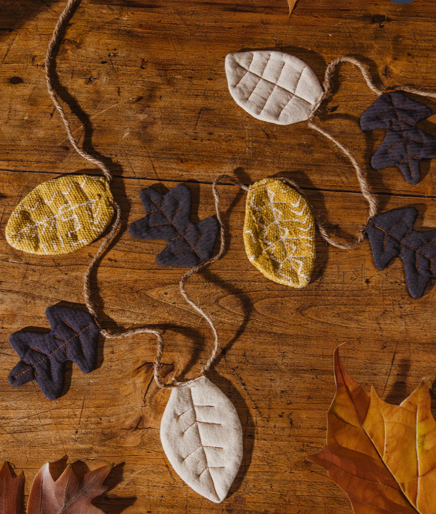 Bring the warmth and coziness of the fall season into your home with our new Leaf Garland. Using unique yellow mud cloth, upcycled jean material and white fabric, our artisans Mary and James beautifully sewed each leaf and strung them on a durable twine to making this charming Leaf Garland. Decorate your home for the season or to bring some nature into a space like a nursery or bedroom.