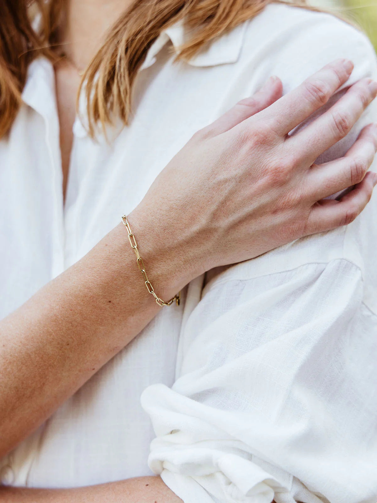 One size fits most. Clasp closure. Pairs well with our Linked Necklace.