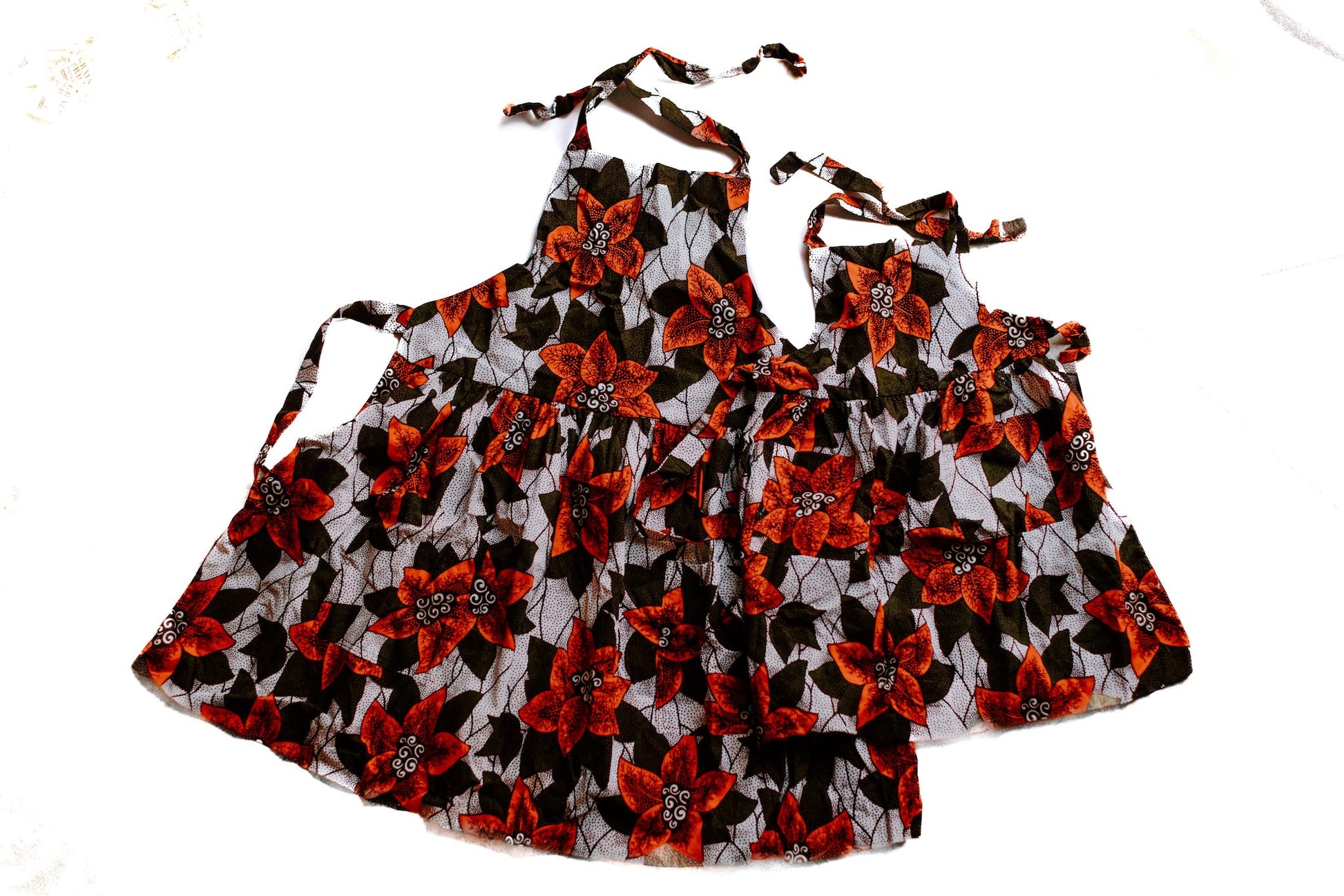 Perfect for holiday baking or anytime of year, these apron sets come in a duo--one adult size apron with adjustable straps and one adjustable child sized apron. Great for dress up and playing kitchen too!
