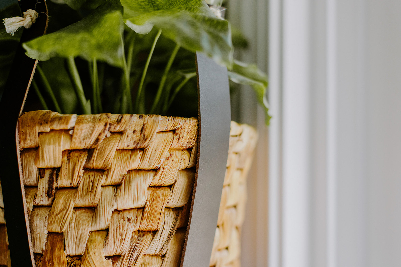 It doesn't matter if it's a succulent, fern, or monstera, this plant hanger is made for all things green! It hangs from any ceiling with its sturdy natural rope made from locally sourced reeds and its leather straps to hug our handcrafted banana leaf basket in your home. The most delightful way to bring nature in.
