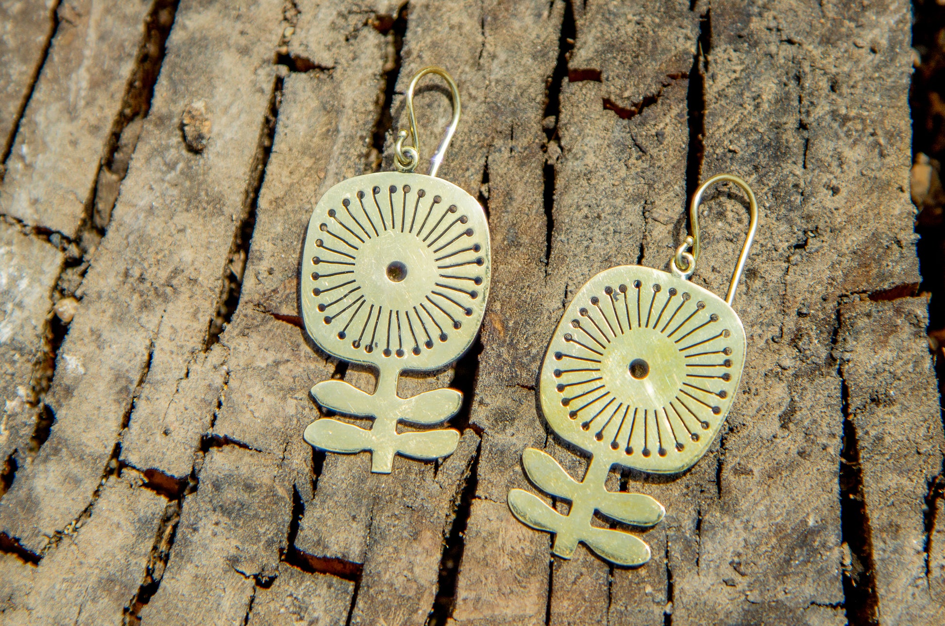 Spread joy just as children spread bloomed dandelion seeds with our Dandelion Dangle earrings. Made from repurposed brass created in a floral design. These beauties are one of our favorite items in this collection.