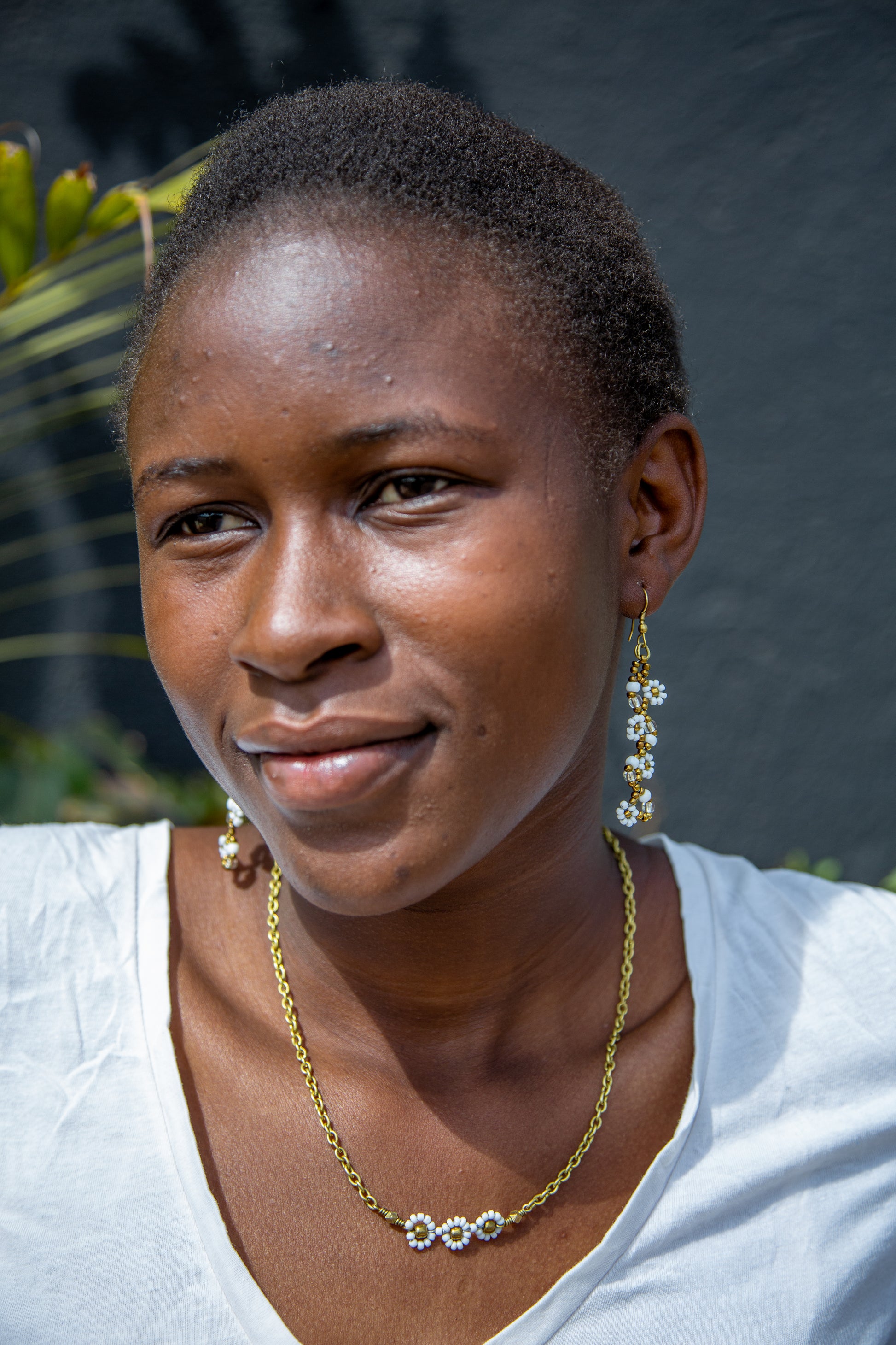 Create with white and gold seed beads, these dainty earrings can be dressed up or down.