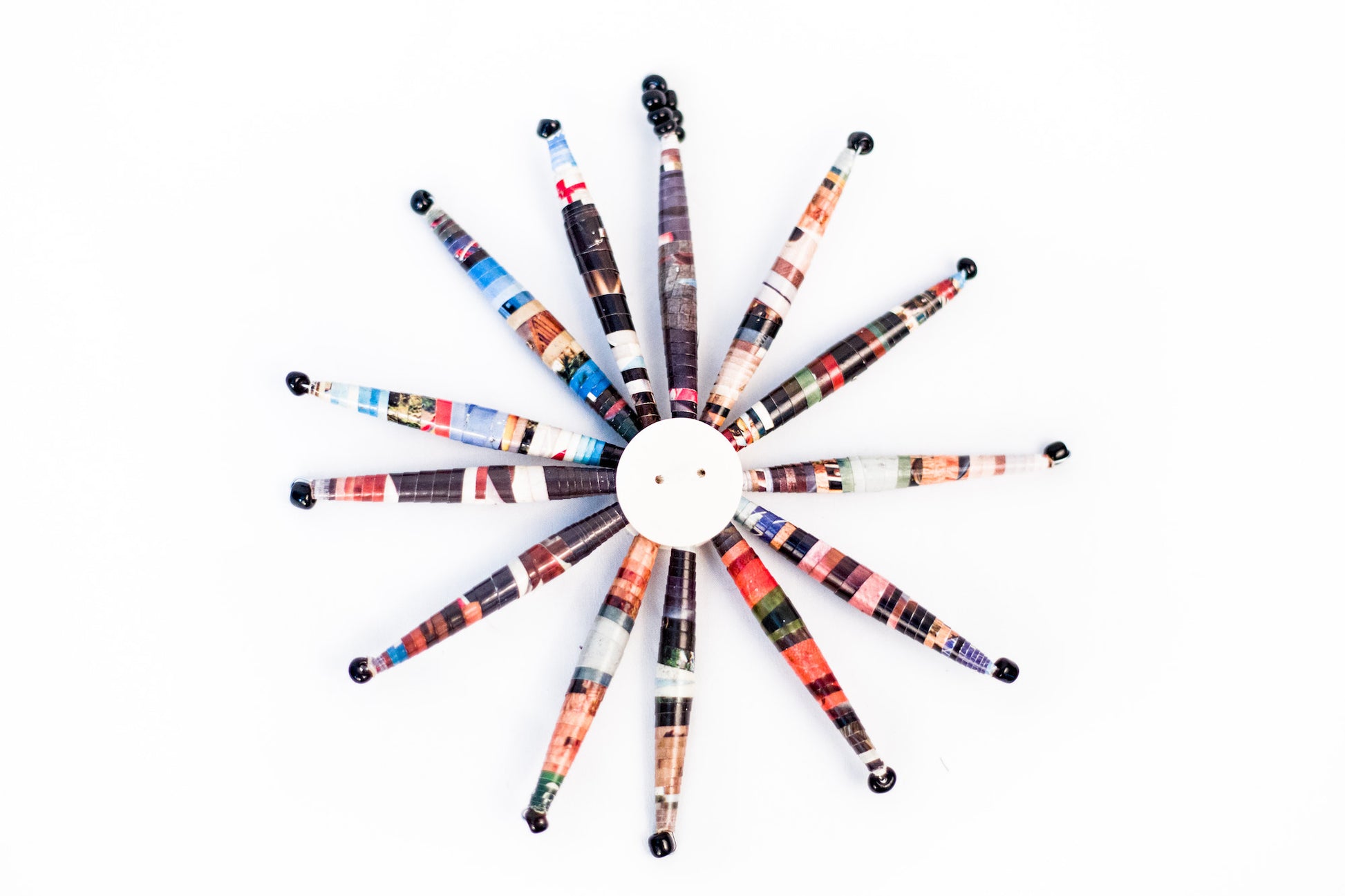 Created with handrolled paper, these ornaments are a beautiful statement for your tree or use them any time of year to decorate a window or wall. Each is created in Kenya. Assorted colors; no two are the same.